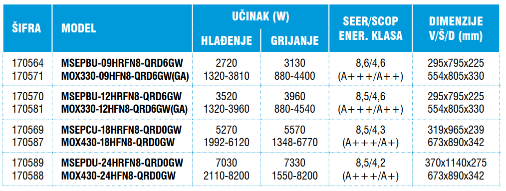 • Učinak hlađenja (kW): 7.0