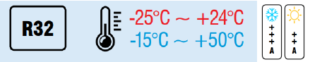 • Grijanje: -25°C do +24°C