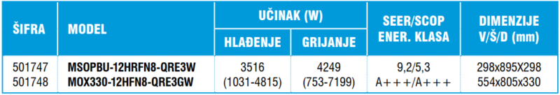 Full DC inverter, Eko gas R32, WIFI ready, Energy Save, Sterilizacija na visokoj temperaturi od 56C, Grijanje do -35C